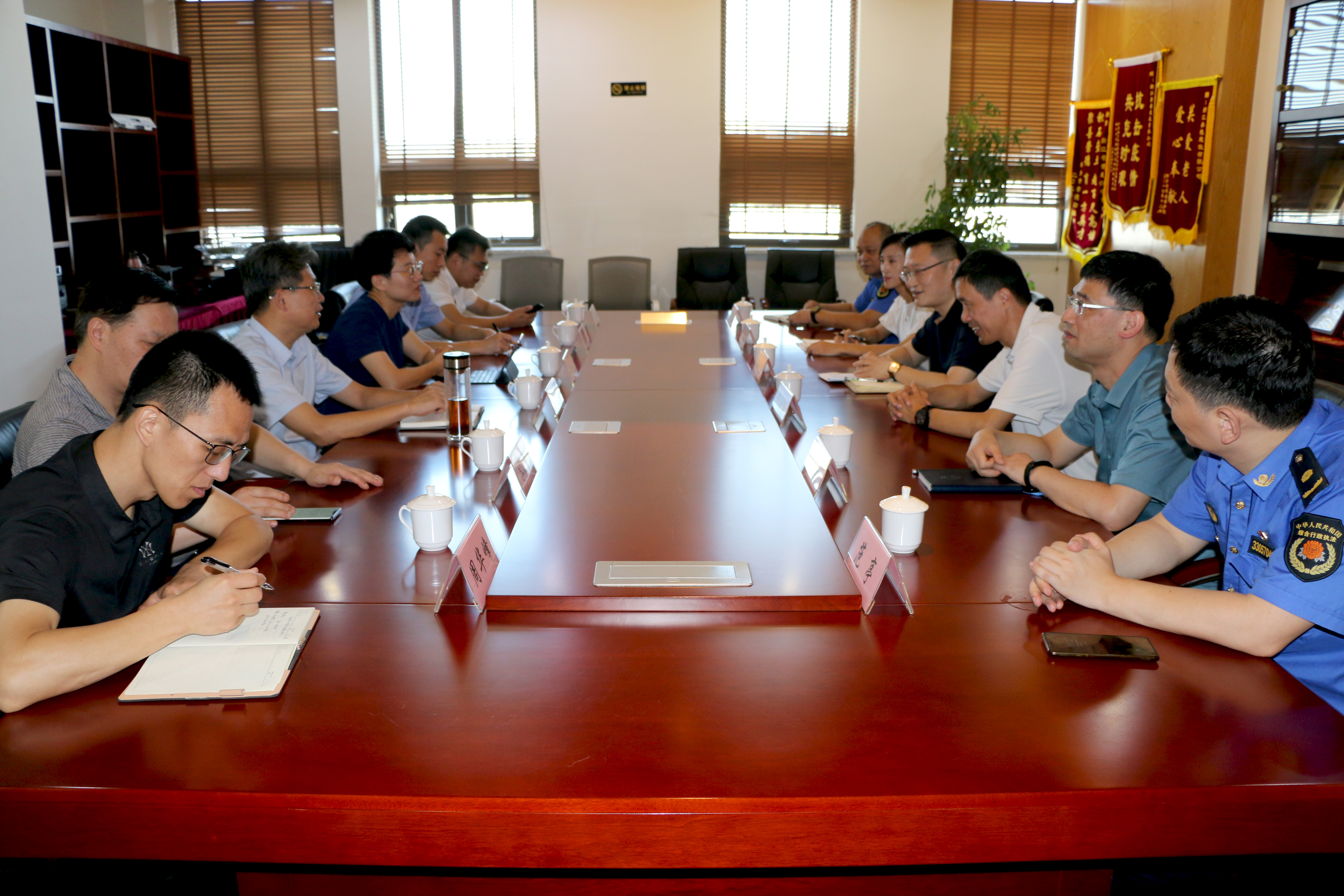 2021年9月18日上午,省司法廳黨委委員、省綜合執(zhí)法指導(dǎo)辦主任儲厚冰一行蒞臨浙江崇德建設(shè)有限公司開展“三服務(wù)”調(diào)研。嘉興市綜合行政執(zhí)法局局長顧秋莉,桐鄉(xiāng)市綜合行政執(zhí)法局局長邱永堂等陪同調(diào)研。浙江崇德建設(shè)有限公司董事長兼總經(jīng)理郁振華熱情接待,雙方就企業(yè)信用修復(fù)方面進行了深入交流。